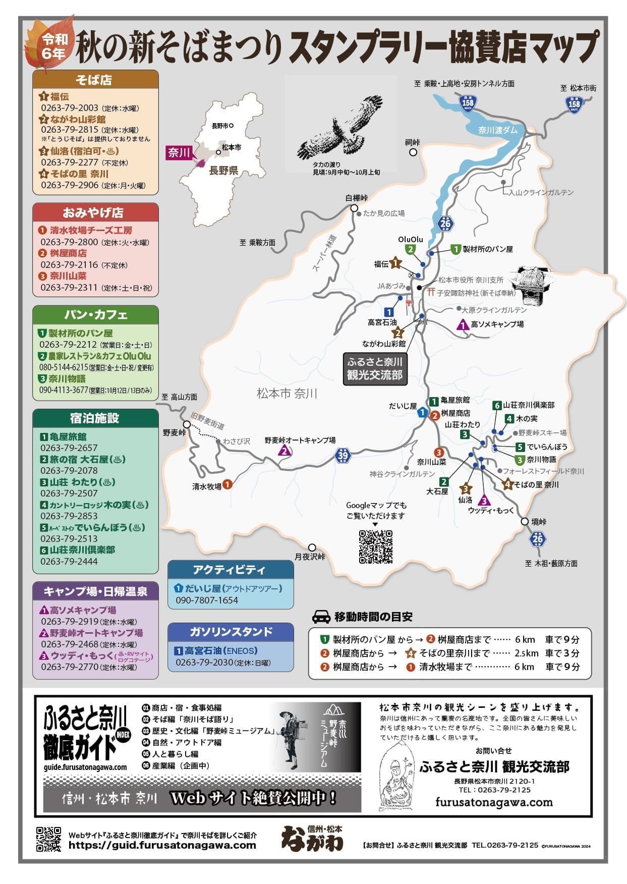 秋の新そばまつり期間中、奈川を楽しみながら、地区内の協賛店を巡るスタンプラリーに参加できます。